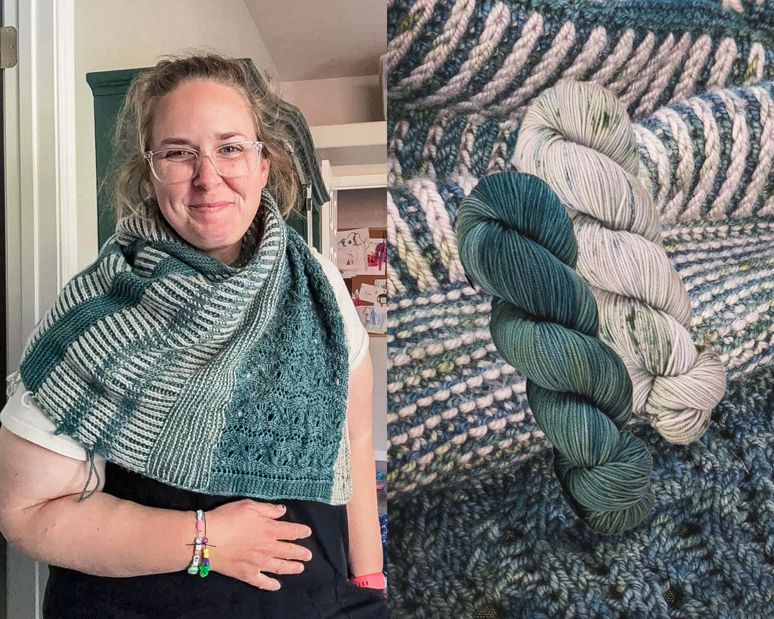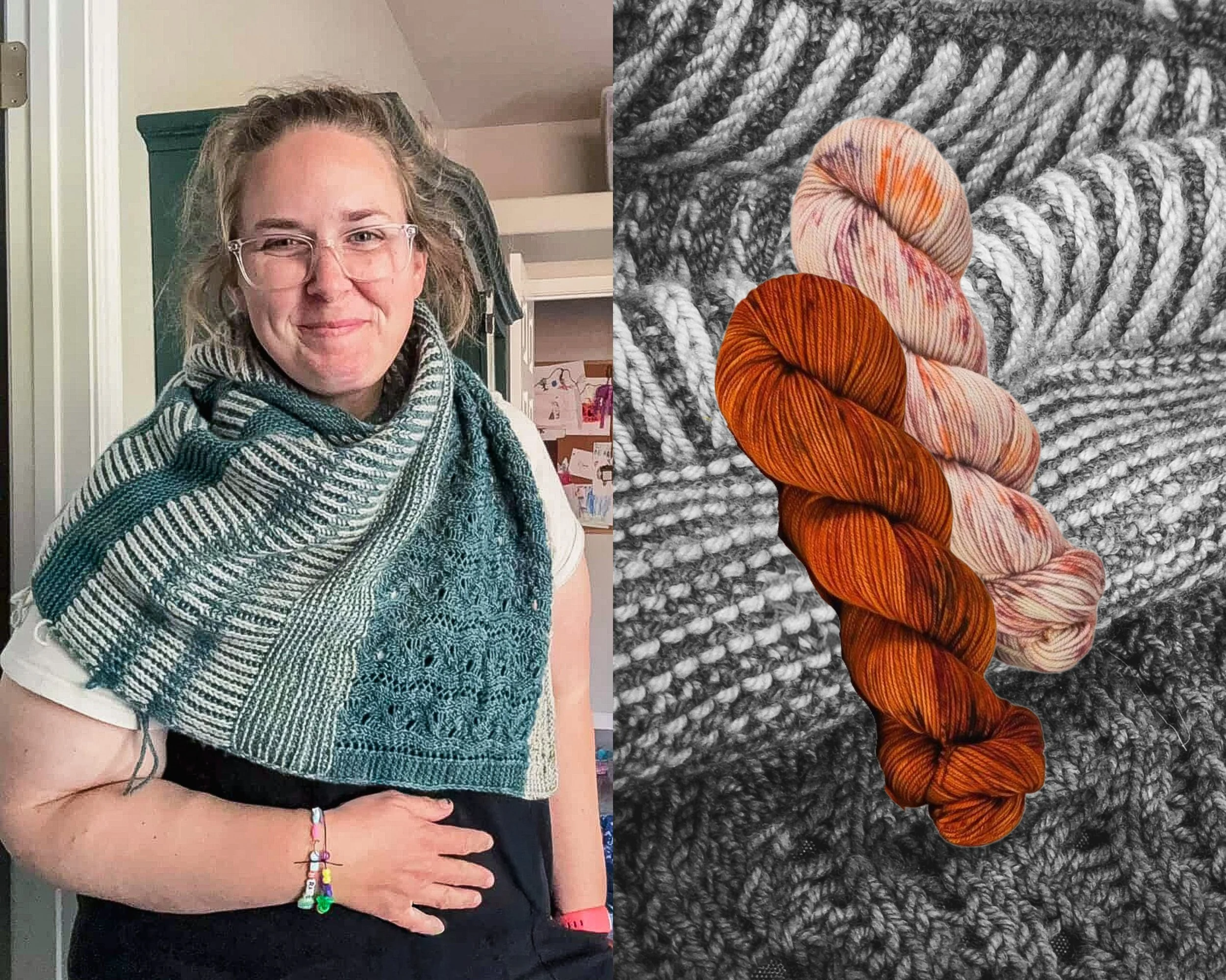 Both designs were written by Alison Poteracke. This collaboration highlights the best qualities of the Shaniko DK base. It offers a gorgeous drape, a silky hand, and a sumptuous squishy texture that brings every stitch to life.